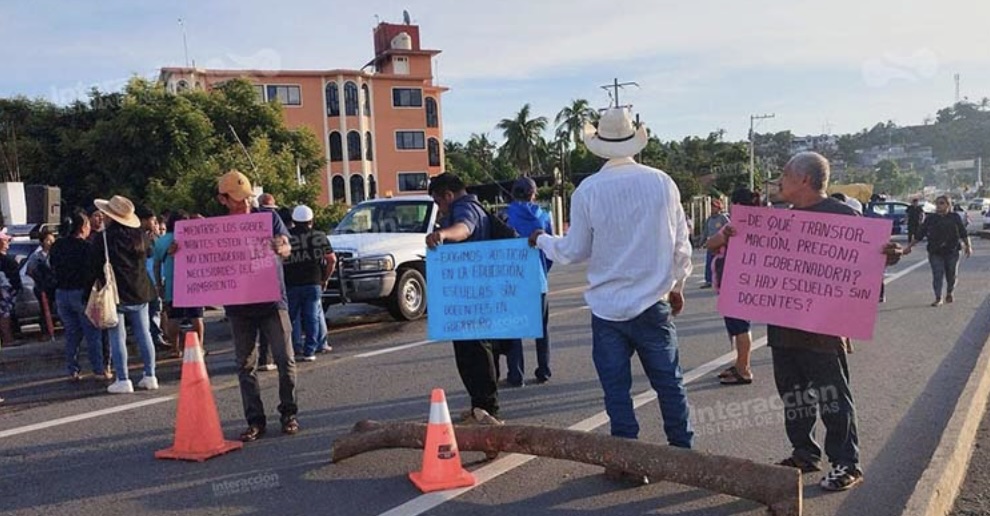 Acapulco, Gro.- Debido a la falta de maestros desde hace un año, alumnos, padres de familia y autoridades del comisariado de San José Buenavista, municipio de Igualapa, iniciaron un bloqueo la carretera federal Acapulco-Pinotepa Nacional, en el crucero de San Juan de los Llanos.